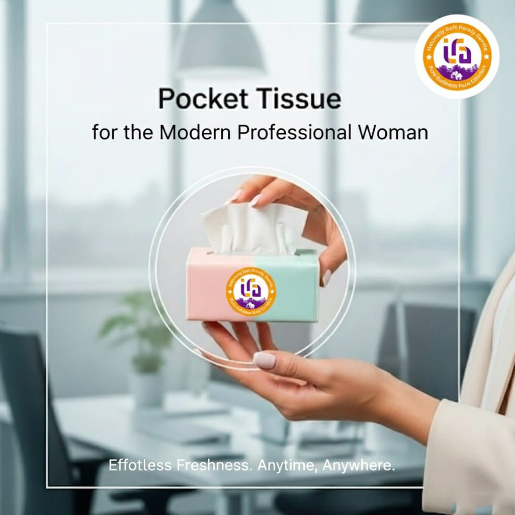 Pocket Tissues are designed for hygienic cleaning on the go, from wiping hands to restroom use or travel freshness. They deliver high absorbency with minimal lint, ensuring clean and comfortable results anytime, anywhere.